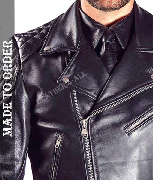 Men's Cowhide Natural Leather Motor Bike Jacket Quilted Panels Bikers Jacket