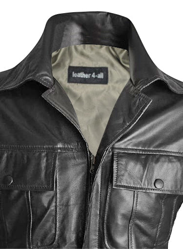 Ladies Lamb Leather Shirt Long Sleeves Leather Shirt In Black Color