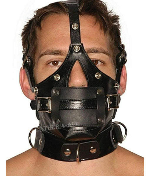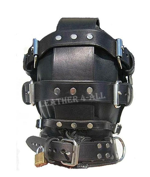 GENUINE LEATHER SENSORY DEPRIVATION BONDAGE HOOD WITH LOCKING MOUTH ZIP BH-1