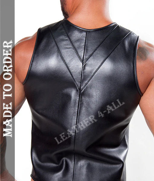 Men Real Cow Leather Motor Biker's Thick Leather Vest In Unique Design Front And Back