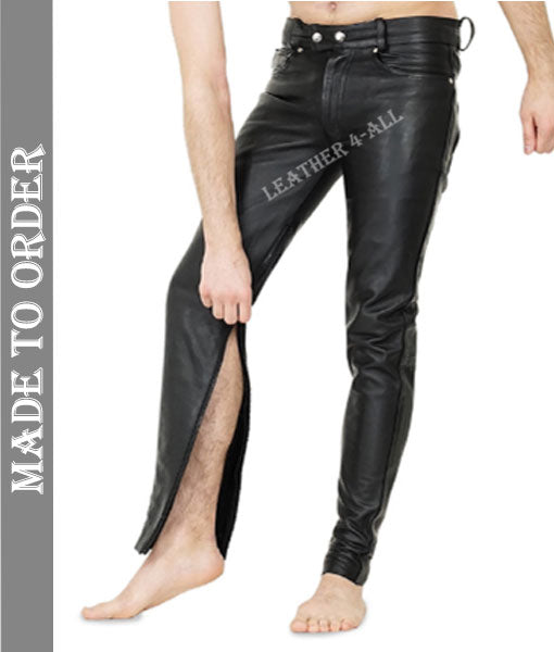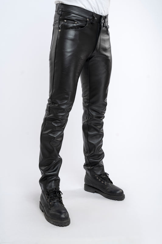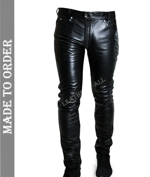 Men's Real Cow Leather Slim Fit Leather Casual Pants BLUF Gay Leather Pants With Inside Ankle Zip Closure