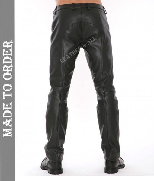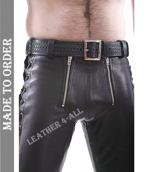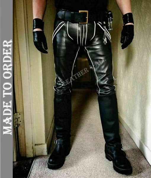 Men's Genuine Cow Natural Grain Leather Bikers Pants With Detachable Codpiece BLUF Pants