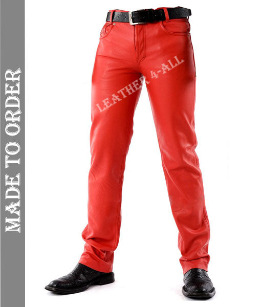 Men's Real Cowhide Leather 5 Pockets Style Pants / Trousers Motor Bikers Pants In Red Color
