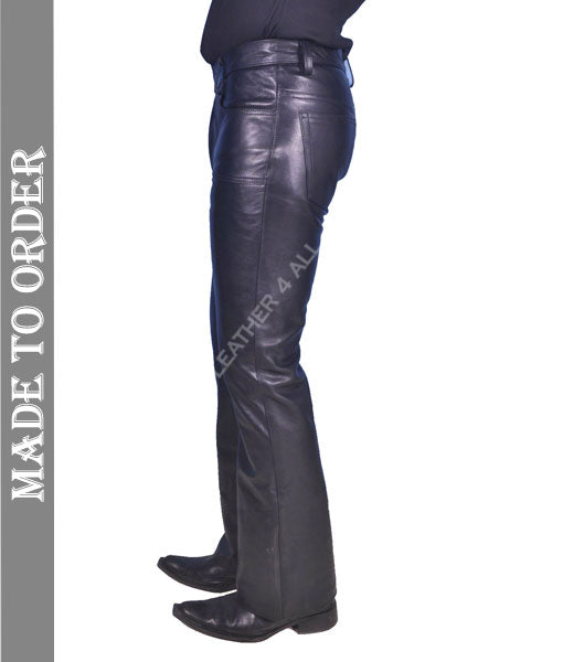 Men's Cowhide Leather Pants Bikers Pants Slim Fit Bootcut Leather Pants