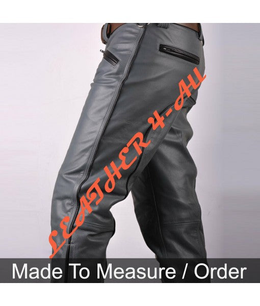 Men's Real Cowhide Leather Bikers Pants Bikers Gray Leather BLUF Bikers Pants