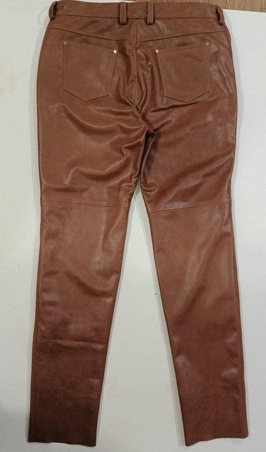 Men's Real Natural Grain Cowhide Vintage 5 Pockets Pants Bikers Pants