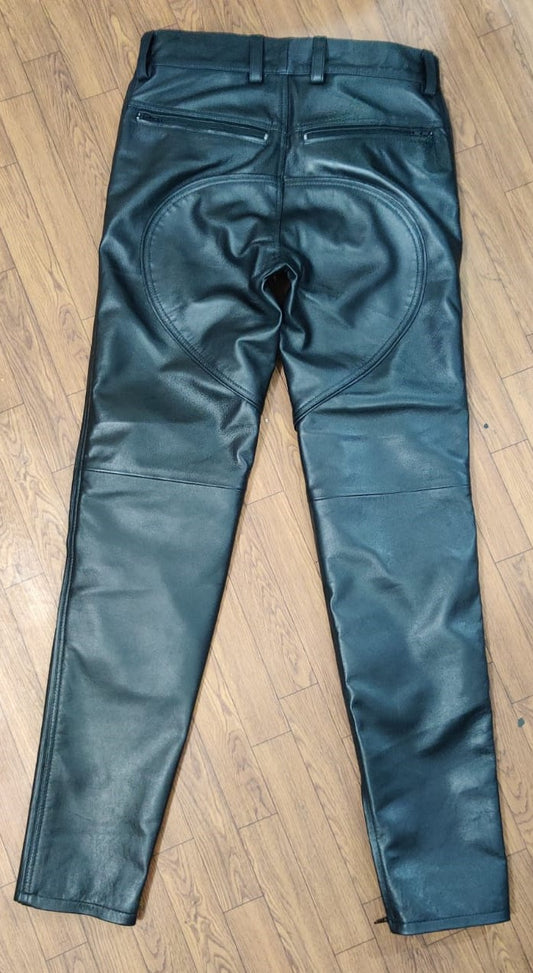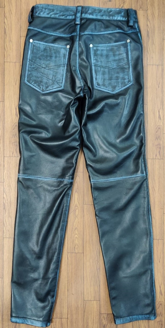 Men's Real Natural Grain Lamb Distressed Leather 5 Pockets Pants Bikers Pants:
