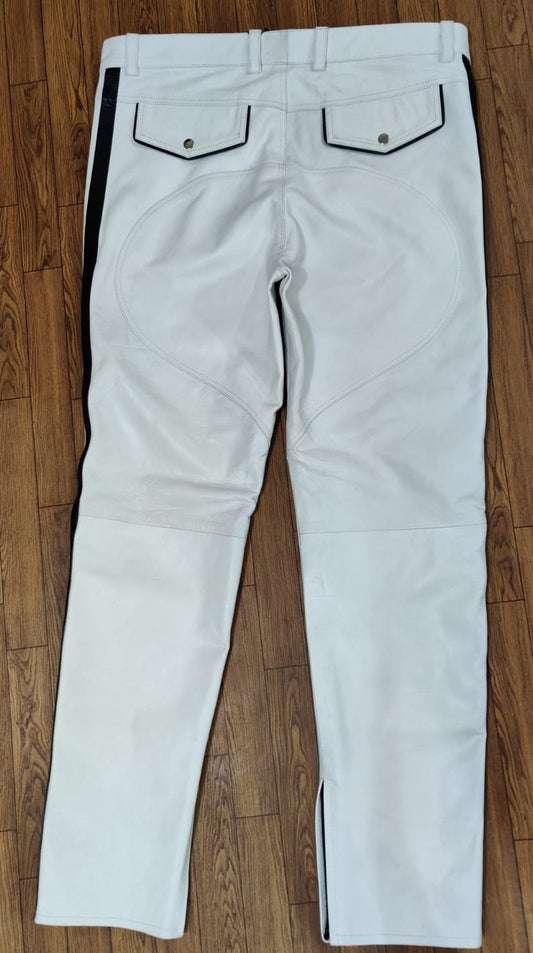 Men's Real Cowhide Leather Bikers Pants Side Stripes & Piping Pants BLUF Pants: