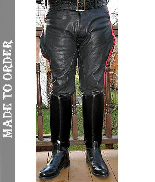 Men's Real Leather Breeches Police Style Pants Red Stripes Leather Breeches