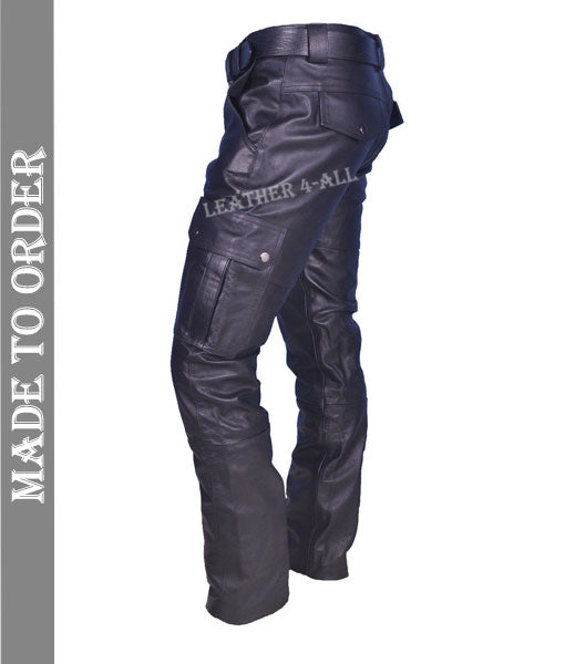 Men's Real Cowhide Leather Cargo Pants Bikers Pants With Cargo Pockets