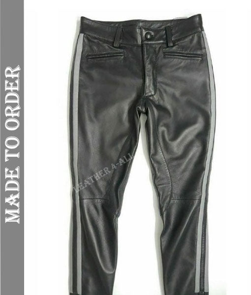 Men's Genuine Cowhide Leather Bikers Pants BLUF Bikers Pants With Side Gray Stripes